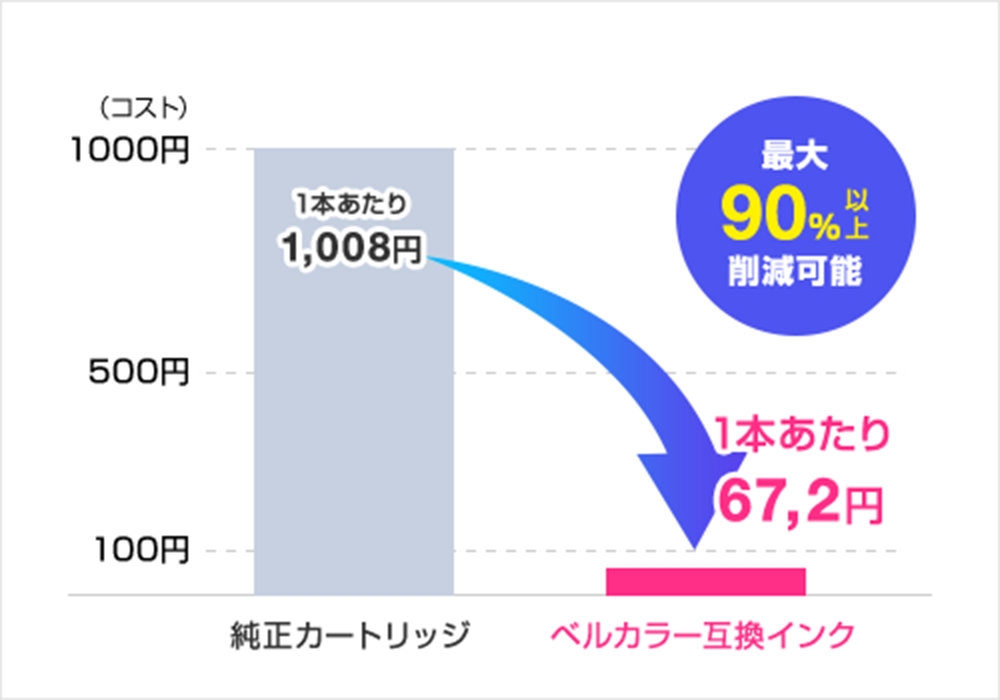純正品に比べ、最大90%のコスト削減を可能にし、高品質ながら最大限の低価格を実現しました。